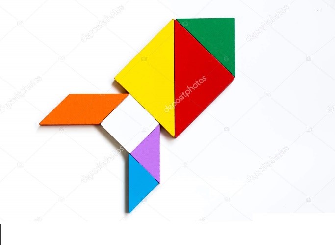 3. Spróbuj ułożyć kształt rakiety z figur geometrycznych.