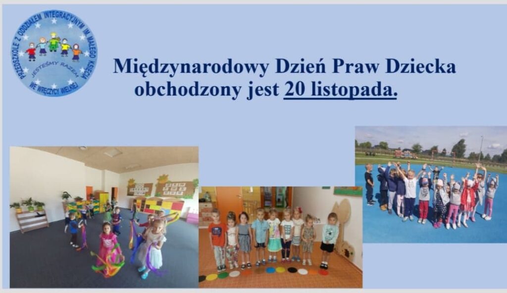Jutro obchodzimy Międzynarodowy Dzień Praw Dziecka, serdecznie prosimy o ubranie dzieci w stroje koloru niebieskiego (w miarę możliwości).
